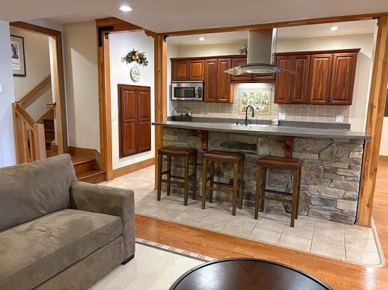 Lower-level private guest suite with full kitchen, living room, bedroom & bath